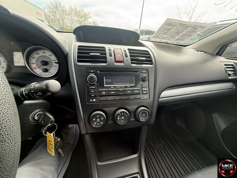 - Exterior styling and convenience: Sport-inspired styling details, sport body accents and a rear spoiler, fog lights for improved visibility, and factory alloy wheels that give the Impreza a more athletic stance.