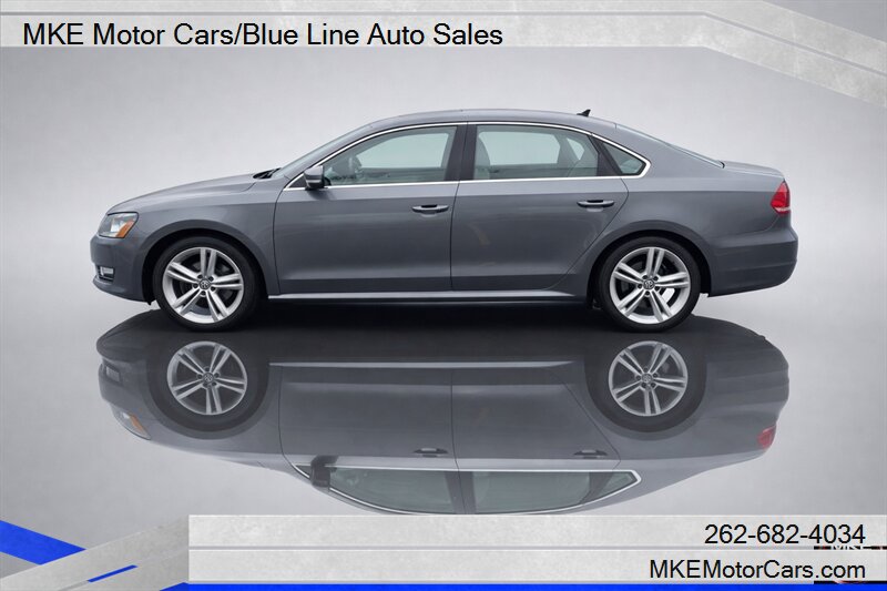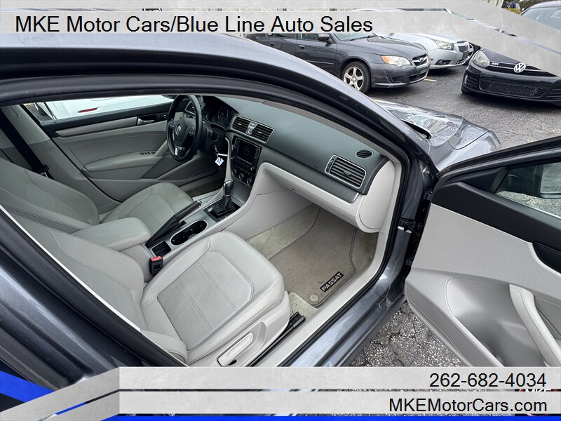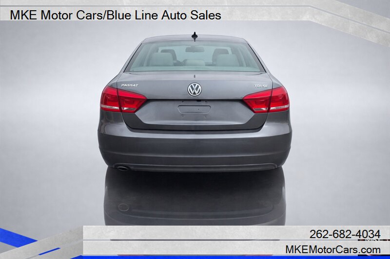 Introducing a stylish and efficient 2014 Volkswagen Passat 2.0L TDI SE — finished in Platinum Gray Metallic with warm Beige leather seating. This diesel-powered Passat pairs Mazda-like practicality with Volkswagen refinement: the heart of the car is the 2.0L Turbocharged Diesel I4 producing 140 hp and a strong 236 lb-ft of torque, routed through a smooth 6-speed automatic transmission to the front wheels. That combination delivers outstanding fuel economy — an EPA-rated 31 MPG city and 43 MPG highway — so you can enjoy long highway runs and daily commutes without frequent stops at the pump.
