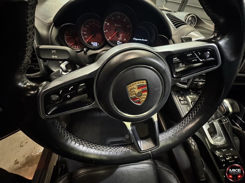 This 2016 Cayenne Turbo offers rare performance and everyday usability wrapped in a sophisticated Meteor Grey Metallic exterior and a luxurious Black leather interior. If you’re looking for a high-performance SUV that still covers errands and long trips with comfort and style, this Cayenne Turbo is a standout choice. Contact us to arrange a test drive or to get more details.
