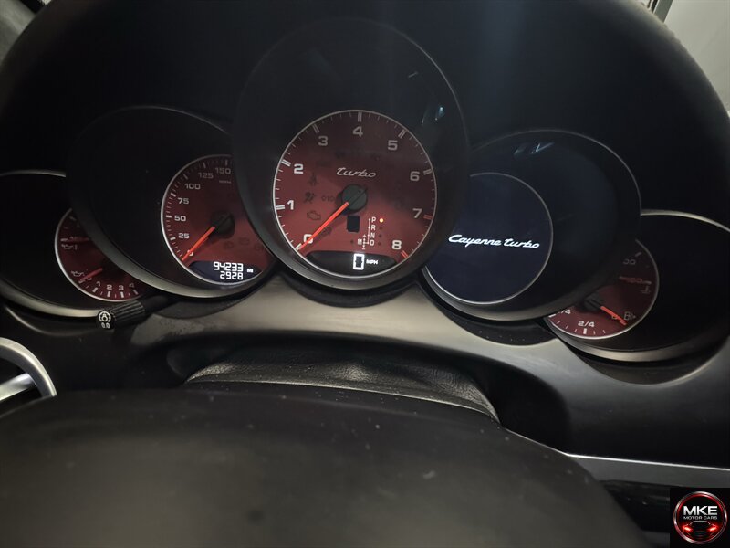 - Exterior: Finished in Meteor Grey Metallic, this Cayenne Turbo wears Porsche’s distinctive, athletic styling—bold front fascia, integrated LED daytime running lights, xenon/bi-xenon headlamp technology, and premium alloy wheels that complement the car’s aggressive stance.